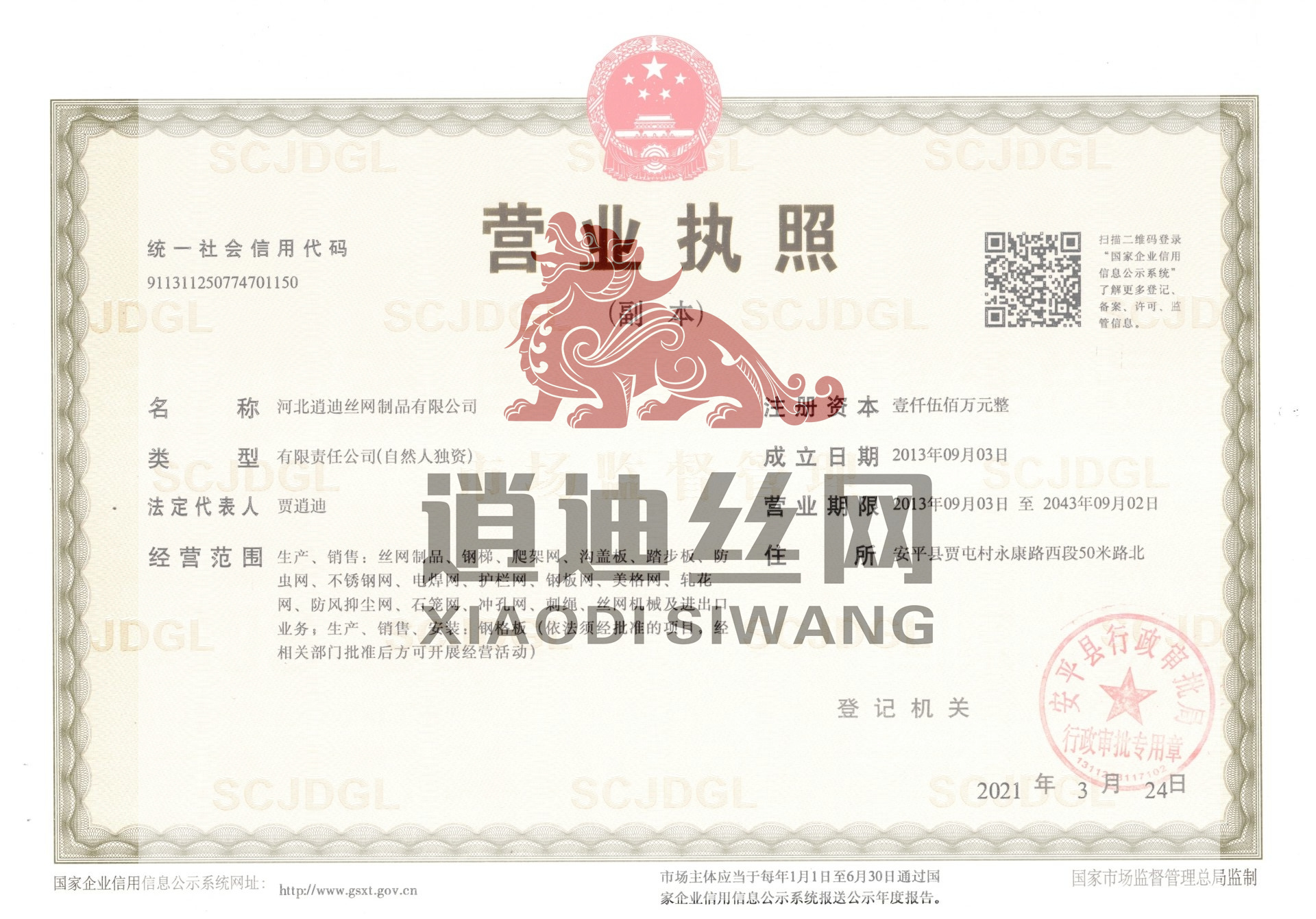 河北逍迪絲網(wǎng)制品有限公司誠信天下,誠信是我們公司一個原則問題不可撼動的,以心中有誠信的思想結(jié)交五湖四海的朋友,能達到雙贏是最好的,我們堅信朋友多了路好走,我們公司都是老朋友多,我們一直是這樣做的。河北逍迪絲網(wǎng)制品有限公司成立于2013年注冊資本壹仟伍佰萬整,主要生產(chǎn)沖孔網(wǎng),鋼格板,金屬防蟲網(wǎng),如實的實體廠家,是一家-研發(fā)-銷售-生產(chǎn)-安裝-售后一條龍公司,2019年通過了ISO 9001認證管理體系符合GB/T 19001-2016/ISO 9001:2015標準,同時通過了SGS認證,擁有商標版權(quán)2品牌,擁有一個著作版權(quán),河北逍迪絲網(wǎng)制品有限公司位于中國有名的(絲網(wǎng)之鄉(xiāng))安平縣,于天津,北京,雄安,石家莊相鄰,交通非常發(fā)達,出口可以選擇天津港口非常近每天都有接貨送貨往返車輛,空運可以選擇石家莊正定機場,附近也有鐵路運輸,當?shù)剡€有兩個生態(tài)物流園區(qū)發(fā)往全國各地,我們沖孔網(wǎng)工廠生產(chǎn)設(shè)備有:普通沖壓機,高速沖壓機,自主研發(fā)小微孔沖壓機,龍門沖,磚塔沖孔,重型沖孔機,萬瓦級別激光切割機,3000W激光切割機,焊接設(shè)備,折彎機,校平機,剪板機,精密校平機,(對板面平整度要求苛刻的客戶群體0.5-0.2誤差)我們公司銷售市場沒有局限性國內(nèi)國外都供應(yīng),擁有出口權(quán)...